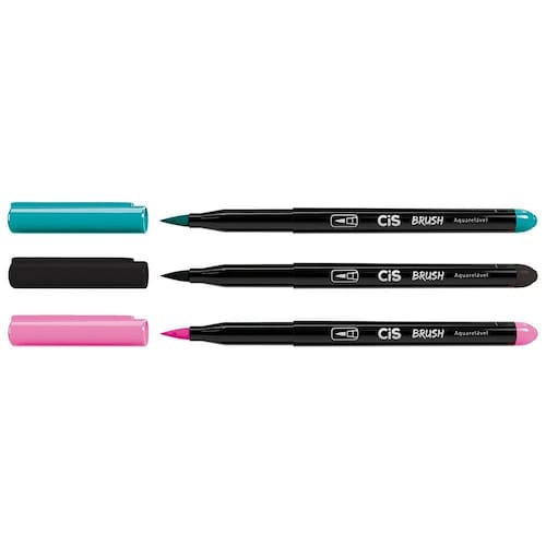 kit 03 Caneta Pincel CIS Brush Pen Aquarelável (Marcador Artístico)