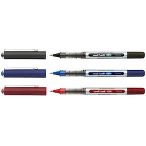 Caneta rollerball com ponta de aço tungstênio que permite uma escrita rápida e menor atrito sobre o papel.