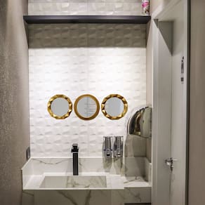 Transforme qualquer ambiente com o Kit de 3 Espelhos Decorativos que une sofisticação, modernidade e charme. Com molduras redondas em acabamento dourado metalizado, este conjunto é perfeito para salas, quartos, corredores e halls de entrada, proporcionando um toque elegante e versátil à decoração. As molduras combinam design geométrico facetado e liso, criando um efeito visual diferenciado. Leves e fáceis de instalar, podem ser dispostos juntos ou separados, permitindo múltiplas composições para personalizar suas paredes com estilo. Feitos com vidro de alta qualidade e moldura em polipropileno resistente, possuem acabamento em pintura dourada metalizada brilhante, garantindo durabilidade e beleza. Prontos para uso, os espelhos são de baixa complexidade de instalação, bastando parafusá-los na parede. Este kit é a escolha perfeita para quem busca decoração elegante, prática e versátil.