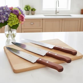 As facas da linha Wood Line, tem tudo para deixar a sua cozinha completa Pois é indicada para auxiliar no preparo de suas receitas. Fabricada em lâmina de aço inox com cabo em madeira que facilita o manuseio e a limpeza. Indicada para corte de legumes e frutas delicadas.