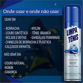 Pode ser aplicado tanto na parte externa (como nylon e solados) quanto na higienização e odorização da parte interna do tênis e palmilhas.