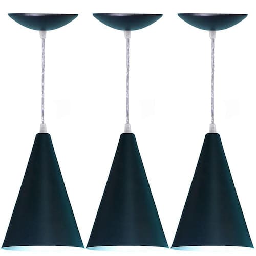 Kit 03 Luminárias Pendente Cone em Alumínio -Cor Preto Fosco