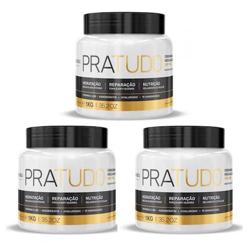 A Mascara Pratudo é uma mascara de tratamento de salão inovadora, completa e versátil, que permite hidratar, nutrir, reconstruir os fios formando filme protetor com apenas um produto de forma rápida e prática. Isso é possível graças a formulação avançada com mais de 25 ativos, sendo os principais nano encapsulados de baixo peso molecular, que penetram e aderem de forma inteligente a fibra capilar desde a cutícula até o córtex, repondo massa, lipídios é um cabelo regenerado, leve, macio com movimento e balanço, ultra hidratado, forte livre de quebra, frizz, emborrachamento, com as cutículas seladas e blindadas promovendo o verdadeiro brilho gloss de salão.