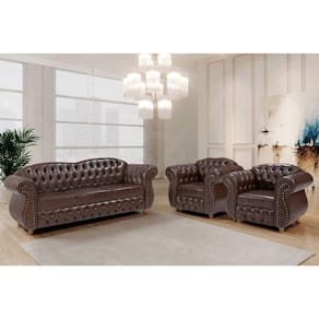 O Conjunto Namoradeira e Poltronas Duque é uma peça atraente na decoração, gerando mais beleza e sofisticação ao ambiente de forma refinada, marcante na decoração clássica, e luxuosa, imponente e confortável. É fabricada em Madeira Maciça de eucalipto seco em estufa, proveniente de área de reflorestamento e estofada artesanalmente por s colaboradores. Leve harmonia e graciosidade para o seu ambiente com o conjunto Namoradeira e Poltronas Chesterfield Duque Via .