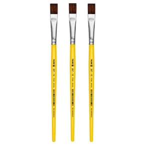 - Pincel chato - Ref: 267 - O pelo de pônei é flexível e poroso, absorve grande volume de tinta, indicado para diversas superfícies como papéis, tecidos finos, cerâmica, vidro, gesso e biscuit.