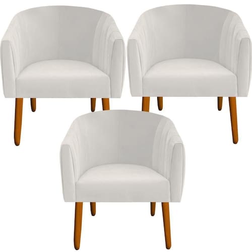 Kit 03 Poltrona Julia Decoração Salão Cadeira Escritório Recepção Estar Amamentação Suede Bege - D'classe Decor