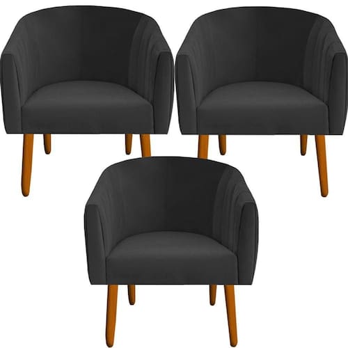 Kit 03 Poltrona Julia Decoração Salão Cadeira Escritório Recepção Estar Amamentação Suede Grafite - D'classe Decor