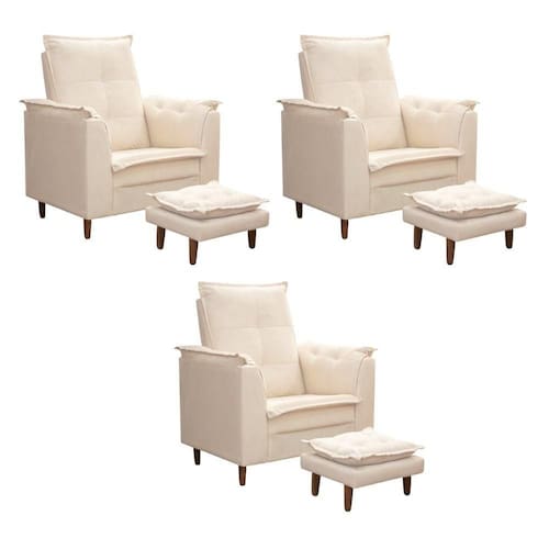 Kit 03 Poltronas Maria Para Amamentação E Descanso Com Puff Confortável Suede Bege Mabe Magazine