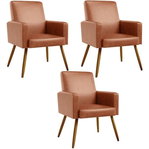 Não é novidade para ninguém que uma boa poltrona precisa ser bastante confortável, com materiais de qualidade e alta durabilidade. O Kit 03 Poltronas Decorativa Para Sala De Estar Maria W01 Pés Palito Couríssimo Camel - Lyam Decor vem exatamente com essa proposta, sofisticado e versátil, com certeza irá valorizar ainda mais seu ambiente.