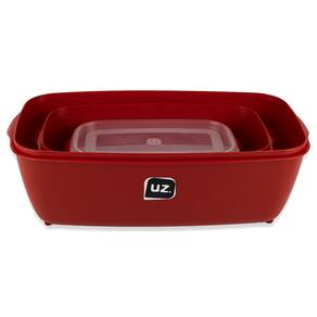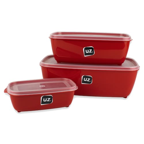 Kit 03 Potes Linha Color Retangular Multiuso Vermelho | UZ Utilidades