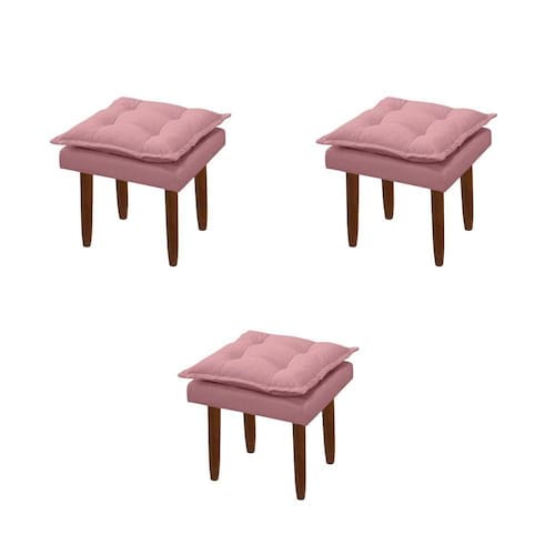 Kit 03 Puff Maria Para Sala De Tv E Estar Quarto Confortável Suede Rose Mabe Magazine