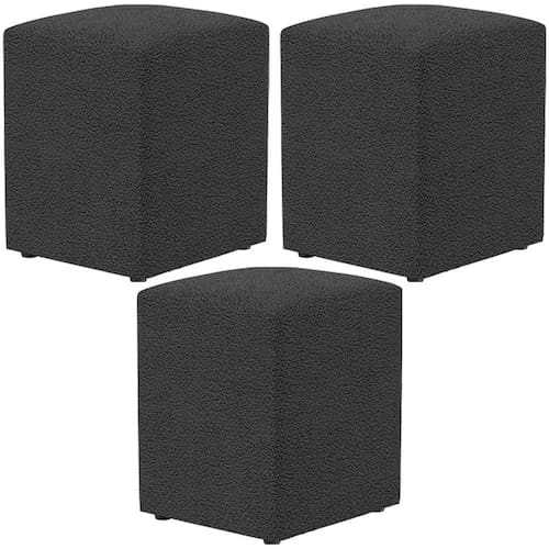 O Kit 03 Puff Quadrado Decorativo L02 Bouclê Preto - Lyam Decor é ideal para você que busca por elegância e praticidade em sua decoração! É estruturado com madeira de eucalipto e revestido em Bouclê, tecido de excelente qualidade.