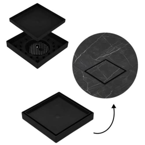 Kit 03 Ralo 10x10 Preto Oculto Piso Porcelanato Inteligente Ralo 10x10 Preto Oculto Seca Piso Porcelanato Inteligente Invisível ===================================== Produto feito em plástico de alta resistência à ação do tempo, produtos de limpeza, água quente, ácidos e etc.