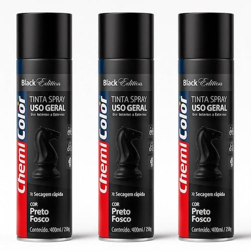 A Tinta Spray Uso Geral Chemicolor 400ml é a solução prática e versátil para quem busca renovar, decorar ou proteger superfícies com rapidez e excelente acabamento. Produzida com componentes de alta qualidade, oferece cobertura uniforme, secagem eficiente e alto rendimento, ideal para projetos em ambientes internos ou externos. Indicada para uso geral, apresenta ótimo desempenho quando aplicada após o preparo adequado da superfície. Sua fórmula adere com facilidade em materiais como metais, cerâmica, gesso, madeira e vime, garantindo resultados consistentes e duradouros. Disponível em diversas cores, permite criar efeitos decorativos modernos, vibrantes e bem definidos. Com frasco de 400ml, proporciona aplicação prática em jato contínuo, permitindo maior controle durante a pintura e acabamento limpo em poucas camadas. Uma escolha versátil para artesanato, manutenção, hobbies e pequenos reparos.