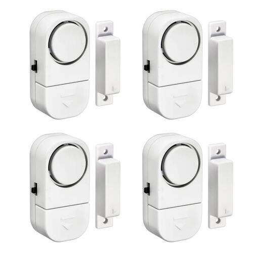 - Botão: Liga / Desliga - Utiliza 03 baterias LR44 inclusas - Cor: Branco - Emissão de ruídos de 90 Db. - Material: Plástico e componentes eletrônicos. - Ideal: Para Portas, Portões e Janelas.
