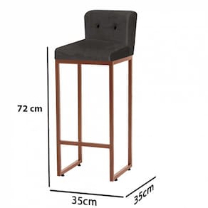 Kit 04 Banqueta Alta C/ Encosto Lucca Industrial Cozinha Balcão Ferro Bronze Botão Preto Suede Cinza - Ahazzo Móveis