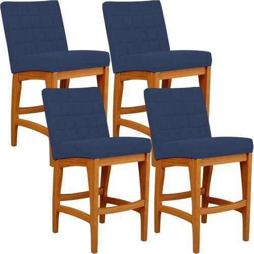 ndo muita excelência, o Kit 04 Banquetas Baixa Para Cozinha Bancada Bar Sala De Jantar 90 cm Fixa Mila L02 Suede Azul Marinho - Lyam Decor é o complemento que faltava para deixar sua casa ainda mais extraordinária. Seu encosto com costura em padrão quadriculado e assento estofados, centralizam em si uma graciosidade estonteante, sem perder todo o seu conforto. A estrutura em madeira, na cor nozes, também é digna de notoriedade, por imprimir bastante personalidade a sua decoração. Vale ressaltar ainda, o apoio para os pés que garante maior segurança à mesma.