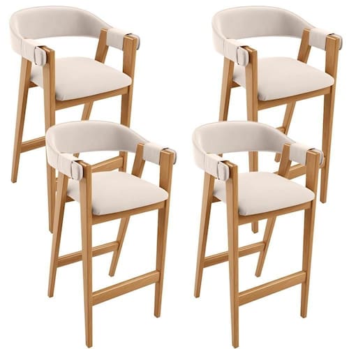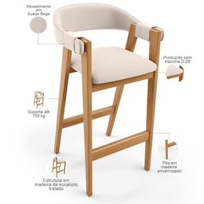 Color: Bege | ColorFamily: Bege | ColorSimple: Bege | ColorSupplier: Bege | Material: Estrutura em Madeira, Revestimento em Suede e espuma | ProductInstructions: Produto para uso em ambiente interno, nao devendo ficar exposto ao sol, calor e umidade excessivos. | MaterialFamily: Madeira, Suede e espuma | Model: Nadja | OriginCountry: Nacional | OriginState: PR | ProductContents: 04 Banquetas | ProductHeight: 190 cm | ProductLength: 53 cm | ProductWarranty: 90 dias após o recebimento do produto | ProductWeight: 40 kg | ProductWidth: 52 cm | SizeDescription: Altura: 190 cm x Largura: 52 cm x Profundidade: 53 cm | SupplierSimpleName: Kit 04 Banquetas Alta Bar Cozinha Sala de Jantar Bar Nadja L02 Suede Bege - Lyam Decor