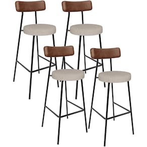 Amplamente moderna, dispondo de muito realce e design singular, o Kit 04 Banquetas Alta Bar Cozinha Sala De Jantar Aço Milão L02 Couríssimo Marrom Linho Bege - Lyam Decor vem com a personalidade e elegância que sua decoração merece! Estruturada em aço carbono, contrasta lindamente com o encosto e assento estofados, cabe mencionar ainda o revestimento do seu encosto em Couríssimo e do assento em Linho, é confeccionada por materiais de excelente qualidade, extremamente resistentes e aconchegantes.