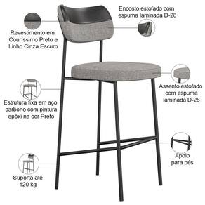Para você que busca conforto, realce e praticidade, O Kit 04 Banquetas Alta Estofada Melina vai superar todas as suas expectativas! Garante muita comodidade e otimiza o espaço, além de harmonizar com seu estilo decorativo facilmente, podendo ser utilizada em bancadas, cozinha americana, espaço gourmet ou home bar, trazendo um toque especial em sua decoração. Sua proposta de design suavizará seu ambiente sem passar despercebida oferecendo mais leveza e receptividade ao seu lar. Estruturada em aço carbono, contrasta lindamente com o encosto e assento estofados que são extremamente confortáveis, resistentes e aconchegantes. Você merece esta incrível combinação em sua casa, adquira já a sua!