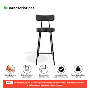 Tipo de Produto: Banqueta Alta Com Encosto, Banqueta Área Gourmet