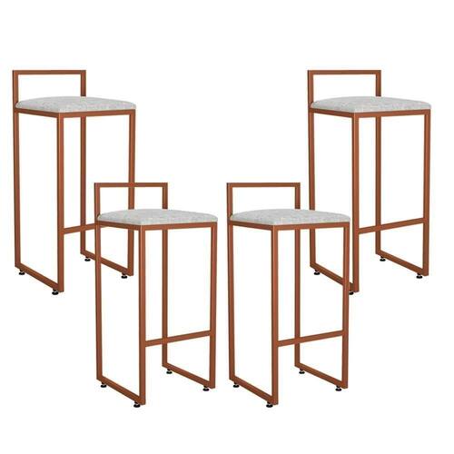 Kit 04 Banquetas Alta Para Cozinha Sala De Jantar Hanna L02 Bronze Linho Cinza - Lyam Decor