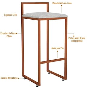 O seu sonho é ter uma cozinha integrada? Uma banqueta pode ser fator determinante para ajudar nesta tarefa, principalmente se você contar com o modelo Kit 04 Banquetas Alta Para Cozinha Sala de Jantar Hanna Bronze Linho Cinza - Lyam Decor. Ideal para quem deseja montar uma cozinha americana ou agregar valor à sua área gourmet, o modelo possui design slim que é super apropriado para apartamentos ou para quem tem uma cozinha compacta. Outro ponto positivo é que este modelo não possui braços, sendo assim ocupa menos espaço e torna melhor para circulação. Ah, também possui apoio para os pés, elemento fundamental para a ergonomia e conforto. As opções de são infinitas, seja para um living, recepção, hall de entrada, sala de jantar, área gourmet ou ambiente corporativo. Para ter um espaço vital procure a distância mínima de 50 cm entre as banquetas. Desta forma a organização ficará harmônica e muito confortável para utilização. Dimensões do produto (A x L x P) 81 x 35 x 36 cm Altura do assento ao chão: 66 cm Características: Estrutura de Ferro com espessura de 20mm. Acabamento em pintura eletrostática cor Bronze. Estrutura do assento em Madeira de Eucalipto. Assento fixo com espuma certificada D-23. Revestimento Linho Importado. Sapatas Niveladoras. Peso suportado: Até 150 kg. - Por se tratar de estofado as medidas podem ter uma pequena variação de até 3 cm. - A tonalidade do produto real poderá ter ligeira variação devido o lote de tecidos. Observações importantes: - Produto para residencial em ambiente interno, não devendo ficar exposto diretamente ao sol, calor e umidade excessivos. - Pode haver alguma diferença de tonalidade entre a imagem e o produto real, por conta do tratamento de imagens e a calibração de cores do seu monitor. - As imagens são meramente ilustrativas, não acompanham objetos de decoração e eletrônicos. - Ao receber a mercadoria, o cliente deve verificar as condições da embalagem, caso haja alguma não assine o comprovante de recebimento. - Montagem, desmontagem e outras instalações serão de responsabilidade do cliente. Não nos responsabilizamos, no ato da , por subir escadas/elevadores ou pelo transporte por guincho em apartamentos. Eventuais despesas são de responsabilidade do comprador. - Confira as dimensões do produto e certifique-se de que passará normalmente por supostos elevadores, portas, escadas e/ou corredores de sua residência. Altura Montado: 81 | Largura Montado: 35 | Profundidade Montado: 36