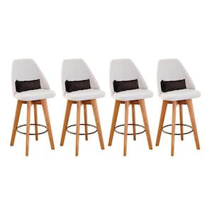 Kit 04 Banquetas Alta Maya Giratória Com Encosto Linho Bege Claro e Almofada Corino Marrom - Aurora Line - Blush