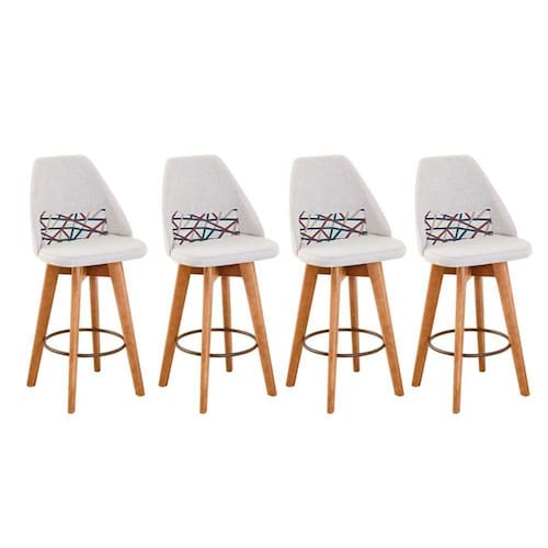 Kit 04 Banquetas Alta Maya Giratória Com Encosto Linho Bege Claro E Almofada Linhas Coloridas - Aurora Line Banqueta Maya Giratória - Aurora Line A Banqueta Maya possui assento e pés em madeira eucalipto com sistema giratório! Os pés contam com um reforço que proporciona um suporte de peso de até 120 Kgs.O assento é revestido com espuma D-23. Além de bonita e charmosa, vai trazer para seu ambiente elegância e proporcionará conforto para sua família e amigos nos momentos de lazer.