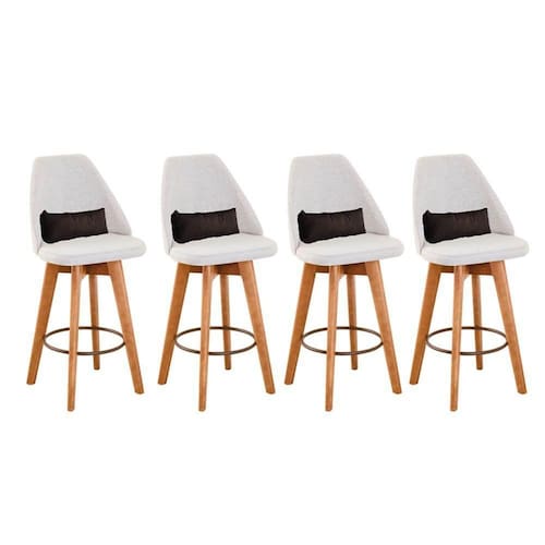 Kit 04 Banquetas Alta Maya Giratória Com Encosto Linho Bege Claro E Almofada Sintético Marrom - Aurora Line