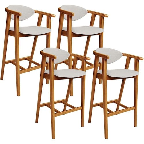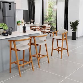 A melhor escolha para os momentos de confraternização no aconchego da sua casa, acaba de chegar! O Kit 04 Banquetas Alta Para Cozinha Sala de Jantar Fixa Cecília L02 Bouclê Cru - Lyam vem com a personalidade e elegância que sua decoração merece! É ideal desde refeições rápidas, até um Happy Hour com os amigos, família. Seu design único valoriza o ambiente, sem deixar pra trás a beleza e qualidade! Para deixar a sua área gourmet mais aconchegante, ela possui assento e encosto estofados, confeccionados com materiais de excelente qualidade, e extremamente resistentes.