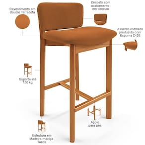 OriginCountry: | Model: Banqueta Dara | Com estofado: Sim | Peso: 40 kg | Com rodas: Não | Fabricante: Lyam Decor | Cor: Terracota | Material: Madeira e Espuma | ProductWarranty: 90 dias após o do produto | MaterialFamily: Madeira e Espuma | ProductHeight: 83 cm | Color: Terracota | Diâmetro: na | SupplierSimpleName: Kit 04 Banquetas Alta Para Cozinha Sala de Jantar Bar Dara L04 Bouclê Terracota - Lyam Decor | ProductLength: 47 cm | Largura: 47 cm | Material do estofamento: Bouclê | Cor do estofamento: Terracota | OriginState: PR | ProductContents: 04 Banquetas | ProductWeight: 40 kg | Estilo: Clássico | Com espaço de armazenamento: Não | Com apoio de braços: Não | SizeDescription: Altura: 83cm x Largura: 47cm x Profundidade: 47cm | Requer montagem: Não | É empilhável: Não | Tipo de produto: Banqueta | ProductWidth: 47 cm | É dobrável: Não | ProductInstructions: Produto para uso residencial em ambiente interno, não devendo ficar exposto diretamente ao sol, calo | Peso máximo suportado: 150 Kg | Profundidade da cadeira: 47 cm | Quantidade de Caixas de embalagem: 1 | Cor do assento: Terracota | Cor da estrutura da cadeira: Castanho | Profundidade do assento: 37 cm | Desenho do tecido: Liso | Altura da cadeira: 83 cm | Espessura do assento: na | É cadeira de balanço: Não | Largura da cadeira: 47 cm | Largura do assento: 45 cm | Altura do assento a partir do solo: 74 cm