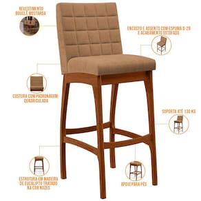 Entregando muita excelência, a Banqueta Alta Para Cozinha Sala De Jantar Fixa Mila B04 Bouclê Mostarda - Lyam Decor é o complemento que faltava para deixar sua casa ainda mais extraordinária. Seu encosto com costura em padrão quadriculado e assento estofados, centralizam em si uma graciosidade estonteante, sem perder todo o conforto, sendo revestidos pelo riquíssimo tecido em bouclê que por si só já é um espetáculo. A estrutura em madeira, na cor nozes, também é digna de notoriedade, por imprimir bastante personalidade a sua decoração. Vale ressaltar ainda, o apoio para os pés que garante maior segurança à mesma.