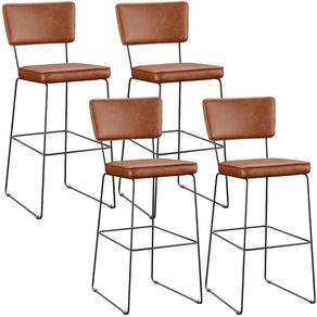 Kit 04 Banquetas Altas Cozinha Sala Jantar Base Em Aço Fixa Allana L02 Couríssimo Camel - Lyam Decor