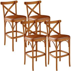 Kit 04 Banquetas Altas Cozinha Bancada Bar Sala Jantar Estofada ávila L02 Couríssimo Camel - Lyam