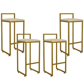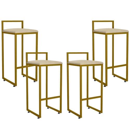 Kit 04 Banquetas Altas Para Cozinha Sala De Jantar Hanna L02 Dourado Suede Bege - Lyam Decor