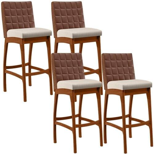 Entregando muita excelência, o Kit 04 Banquetas Altas Cozinha Sala De Jantar Fixa Mila B04 Couríssimo Marrom Linho Cru - Lyam Decor é o complemento que faltava para deixar sua casa ainda mais extraordinária. Seu encosto com costura em padrão quadriculado e assento estofados, centralizam em si uma graciosidade estonteante, sem perder todo o conforto. A estrutura em madeira, na cor nozes, também é digna de notoriedade, por imprimir bastante personalidade a sua decoração. Vale ressaltar ainda, o apoio para os pés que garante maior segurança à banqueta.