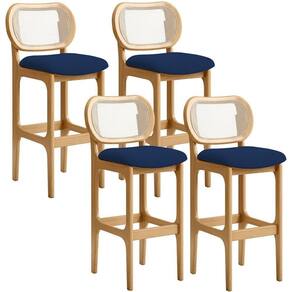 Kit 04 Banquetas Altas Para Cozinha Bancada Sala Tela Betta Fixa L02 Suede Azul Marinho - Lyam