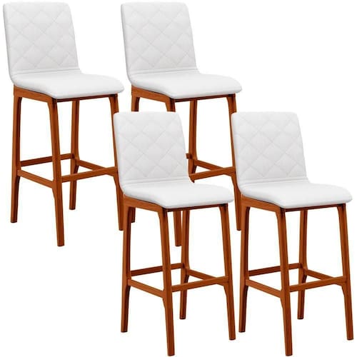O complemento perfeito para o seu ambiente existe e está aqui!! O Kit 04 Banquetas Altas Para Cozinha Sala de Jantar Fixa Zoe B04 Facto Branco - Lyam Decor vai ampliar totalmente a maneira como você compunha sua decoração, numa pegada clássica, com belíssima estrutura em madeira, na cor nozes, possui assento e encosto estofados super confortáveis e convidativos, além do apoio para os pés que garante maior segurança.