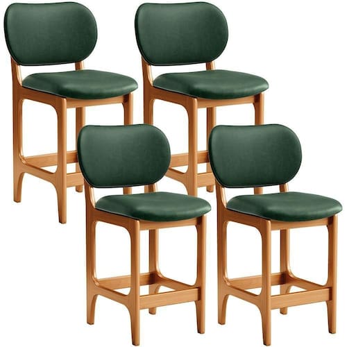 Amplamente sofisticada, o Kit 04 Banquetas Baixa Bar Cozinha Sala Jantar Betta L02 Imbuia Facto Verde Musgo - Lyam Decor irá agregar ainda mais valor em sua decoração!! Sendo capaz de compor muito bem o ambiente, é produzida com materiais de excelente qualidade, a resistente estrutura em madeira de Taeda, na cor imbuia, conta com apoio para os pés (que garante maior segurança), além do assento e encosto estofados super confortáveis e convidativos, que são revestidos em tecido Couríssimo, composição extremamente elegante.
