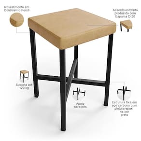 Color: Bege | ColorFamily: Bege | ColorSimple: Bege | ColorSupplier: Fendi | Material: Estrutura de aço carbono, Revestimento em Couríssimo e espuma | MaterialFamily: Aço carbono, couro sintético e espuma | Model: Stella | OriginCountry: Nacional | OriginState: PR | ProductContents: 04 Banquetas | ProductHeight: 98 cm | ProductInstructions: Produto para uso em ambiente interno, nao devendo ficar exposto ao sol, calor e umidade excessivos. | ProductLength: 37 cm | ProductWarranty: 90 dias após o recebimento do produto | ProductWeight: 16 kg | ProductWidth: 39 cm | SizeDescription: Altura: 98 cm x Largura: 39 cm x Profundidade: 37 cm | SupplierSimpleName: Kit 04 Banquetas Baixa Bar Cozinha Sala De Jantar Preto Stella L02 Couríssimo Fendi - Lyam Decor