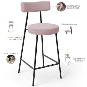 Largura: 44 | ColorFamily: Rosa | Model: Milão | Depth Front To Back: 52 | ColorSimple: Rosa | ColorSupplier: Rosê | Altura: 100 | Color: Rosa | DepthWidthSideToSide: 52 | ProductHeight: 84 cm | ProductWeight: 22 kg | ProductInstructions: Produto para uso em ambiente interno, nao devendo ficar exposto ao sol, calor e umidade excessivos. | SizeDescription: Altura: 84 cm x Largura: 44 cm x Profundidade: 52 cm | SupplierSimpleName: Kit 04 Banquetas Baixa Para Cozinha Sala De Jantar Bar Bancada Milão L02 Bouclê Rosê - Lyam Decor | MaterialFamily: Poliéster | ProductWidth: 44 cm | ProductWarranty: 90 dias após o recebimento do produto | OriginState: PR | ProductLength: 52 cm | ProductContents: 04 Banquetas | OriginCountry: Nacional | Material: Espuma laminada, aço carbono, ponteiras plásticas | Profundidade: 52 | Lado a Lado: 52 | Cor: Rosê