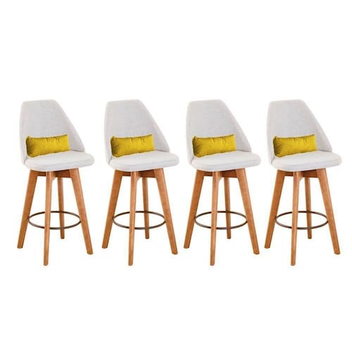 Kit 04 Banquetas Alta Maya Giratória Com Encosto Linho Bege Claro E Almofada Sintético Amarelo - Gat Magazine