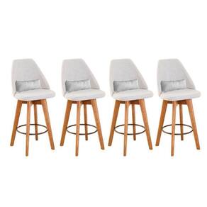 Kit 04 Banquetas Alta Maya Giratória Com Encosto Linho Bege Claro E Almofada Suede Branco - Gat Magazine Banqueta Maya Giratória - GAT MAGAZINE A Banqueta Maya possui assento e pés em madeira eucalipto com sistema giratório! Os pés contam com um reforço que proporciona um suporte de peso de até 120 Kgs.O assento é revestido com espuma D-23. Além de bonita e charmosa, vai trazer para seu ambiente elegância e proporcionará conforto para sua família e amigos nos momentos de lazer.
