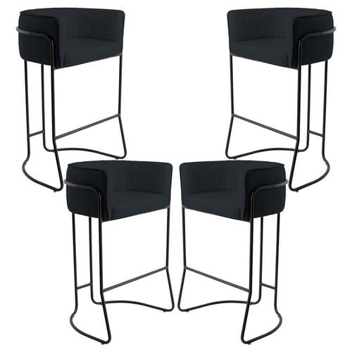 Kit 04 Banquetas Decorativas Fixa Base De Aço Preto Betina D02 Corano Preto C-05 - Lyam Decor O Kit 04 Banquetas Decorativas Fixa Base de Aço Preto Betina D02 Corano Preto C-05 - Lyam Decor exala formosura e elegância! Excelente opção para dispor em sua sala de estar, sala de jantar, em cozinha americana e até mesmo área gourmet. Seu protagonismo é notório, sem sombra de dúvidas é perfeita para qualquer ambientação que desejar colocá-la. Com sua resistente estrutura em aço, na cor Preto, o encosto e assento revestidos em Corano, deixarão sua decoração ainda mais sofisticada. Oferecendo máximo conforto sem deixar de transmitir todo a magnitude que seu lar merece! Dimensões do produto (L x A x P) 59 x 92 x 44 cm Medidas Internas: Altura do Assento: 74 cm Profundidade Livre do Assento: 43 cm Largura do Assento: 41 cm Altura livre do Encosto: 17 cm Largura do braço: 8 cm Altura do braço: 17 cm Altura dos pés: 67 cm Características: Estrutura em madeira reflorestada de eucalipto; Partes em MDF e OSB; Revestimento em Corano Preto; Assento Fixo com espuma D-28 Sobre Percintas elásticas; Encosto Fixo com espuma D-23 Sobre Percintas elásticas; Braço Espuma D-23; Peso suportado: Até 120 kg; Base em aço com acabamento em pintura epóxi na cor Preto. - Por se tratar de estofado as medidas podem ter uma pequena variação de até 3 cm. - A tonalidade do produto real poderá ter ligeira variação devido o lote de tecidos. Observações importantes: - Produto para uso residencial em ambiente interno, não devendo ficar exposto diretamente ao sol, calor e umidade excessivos. - Pode haver alguma diferença de tonalidade entre a imagem e o produto real, por conta do tratamento de imagens e a calibração de cores do seu monitor. - As imagens são meramente ilustrativas, não acompanham objetos de decoração e eletrônicos. - Ao receber a mercadoria, o cliente deve verificar as condições da embalagem, caso haja alguma não assine o de . - Montagem, desmontagem e outras instalações serão de responsabilidade do cliente. Não nos responsabilizamos, no ato da , por subir escadas/elevadores ou pelo por guincho em apartamentos. Eventuais despesas são de responsabilidade do comprador. - Confira as dimensões do produto e certifique-se de que passará normalmente por supostos elevadores, portas, escadas e/ou corredores de sua residência. Altura Montado: 92 | Largura Montado: 59 | Profundidade Montado: 44