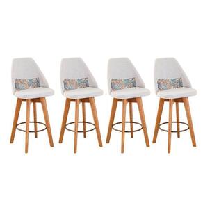 Kit 04 Banquetas Alta Maya Giratória Com Encosto Gourmet Linho Bege E Almofada Folhas - Gat Magazine Banqueta Maya Giratória - GAT MAGAZINE A Banqueta Maya possui assento e pés em madeira eucalipto com sistema giratório! Os pés contam com um reforço que proporciona um suporte de peso de até 120 Kgs.O assento é revestido com espuma D-23. Além de bonita e charmosa, vai trazer para seu ambiente elegância e proporcionará conforto para sua família e amigos nos momentos de lazer.
