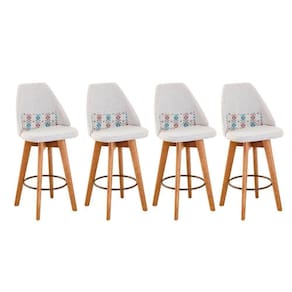Kit 04 Banquetas Alta Maya Giratória Com Encosto Gourmet Linho Bege E Almofada Mosaico - Gat Magazine Banqueta Maya Giratória - GAT MAGAZINE A Banqueta Maya possui assento e pés em madeira eucalipto com sistema giratório! Os pés contam com um reforço que proporciona um suporte de peso de até 120 Kgs.O assento é revestido com espuma D-23. Além de bonita e charmosa, vai trazer para seu ambiente elegância e proporcionará conforto para sua família e amigos nos momentos de lazer.