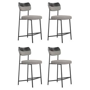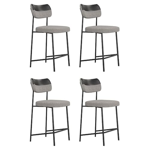 Kit 04 Banquetas Médias Cozinha Lila com Encosto Couríssimo Preto Linho Cinza - Abmaza