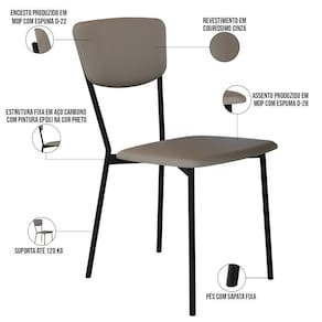 Color: Cinza | ColorFamily: Cinza | ColorSimple: Cinza | ColorSupplier: Cinza | Material: Estrutura em Aço, MDP, Revestimento em Couro sintético e espuma | MaterialFamily: Aço, MDP, Couro sintético e espuma | Model: Village | OriginCountry: Brasil | OriginState: PR | ProductContents: 04 Cadeiras | ProductHeight: 249 cm | ProductInstructions: Produto para uso em ambiente interno, nao devendo ficar exposto ao sol, calor e umidade excessivos. | ProductLength: 53 cm | ProductWarranty: 90 dias após o recebimento do produto | ProductWeight: 26 kg | ProductWidth: 43 cm | SizeDescription: Altura: 249 cm x Largura: 43 cm x Profundidade: 53cm | SupplierSimpleName: Kit 04 Cadeira Para Sala de Jantar Village Preto C01 Courino Cinza - Lyam Decor
