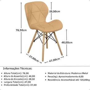 Um diferencial importante destas cadeiras é que elas possuem uma base fabricada em madeira e o seu assento em madeira compensada estofada revestida em courvin, sendo materiais que trazem mais resistência à cadeira e um toque de estilo a mais no modelo. Vale a pena apostar nesta cadeira, a versatilidade e o seu formato permite que ela seja colocada em diversos espaços da casa.